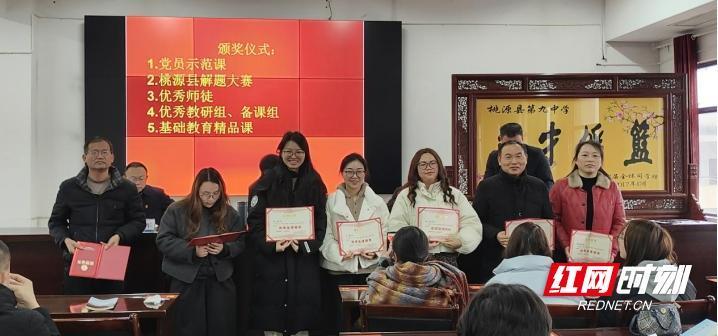 表彰现场。大会中,学校对在过去一年中表现突出的教师和团队进行了表彰,包括党员示范课、桃源县解题大赛、优秀师徒、优秀教研组备课组以及基础教育精品课等多个奖项。通过这样的表彰,学校希望能够激励更多的教师积极投身于教育教学改革中,树立榜样,传承优秀的教育理念和教学方法。此次全体教师大会不仅为桃源九中的教育工作指明了方向,也为全体教职员工提供了一个相互学习、交流思想的平台。桃源九中全体教师将继续携手并肩,努力实现教育的更高目标,为培养出更多优秀的人才而不懈奋斗。举报/反馈